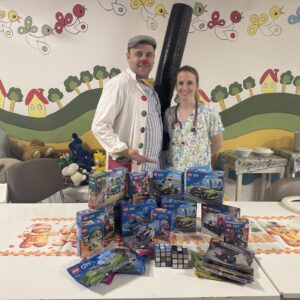 A látogatás során Csatai Gergő Mosolydoktor, Guinness-rekorder lufizsonglőr kórteremről kórteremre járva szórakoztatta és vidította fel a gyerekeket, miközben apró ajándékokkal és LEGO építőjátékokkal lepte meg őket, hogy a kórházi tartózkodás ideje alatt is legyen lehetőségük közös játékra és örömteli élményekre.